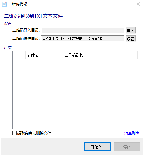 本工具可以批量提取微信群二维码中的微信群链接,点击导入选择微信群二维码所在的目录,选择该目录,点击设置选择提取链接保存的目录,点击开始就可以批量识别二维码了,识别后的内容以文本文件形式保存着你设置的目录内。