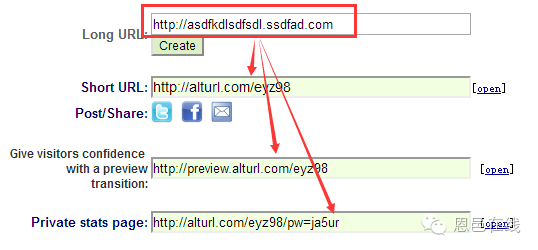 在“Create a ShortURL”处输入你要转发的长域名,点击Create,即可获得一个免费缩短域名,转发速度快无广告。