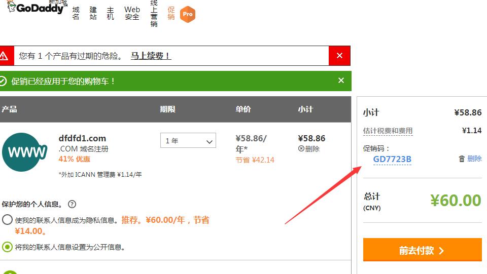 *不适用于 ICANN 管理费、税费、域名转入、精品域名、高级模板、搜索引擎推手广告预算、云服务器套餐、任何由我们专业网站服务团队提供的营销或设计服务、礼品卡或商标持有者/预购优先权或预购费。优惠仅限于购买新产品,为产品续费时不能使用。不能与任何其他优惠、低价销售、折扣或促销同时使用。首次购买的使用期间结束后,打折的产品将按当时的续费标价续费。 优惠到期时间: 2017/07/30。