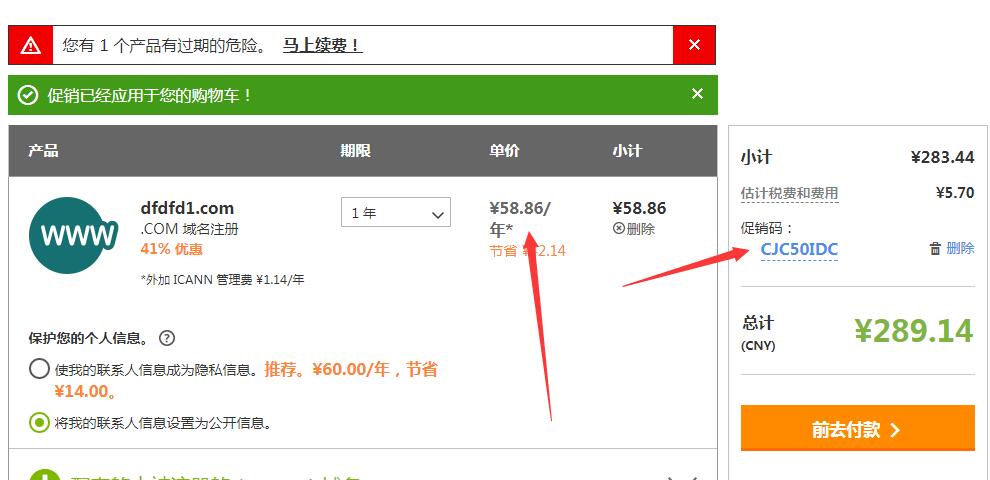 ±不适用于 ICANN 管理费、税费、域名转入、精品域名、高级模板、搜索引擎推手广告预算、礼品卡或商标拥有人/优先预购或普通预购等费用。不可与其他优惠、特价销售、折扣或促销一起使用。超过初始购买使用期限后,折扣产品将按当前续费标价续费。优惠仅限于购买新产品,不可用于产品续费。